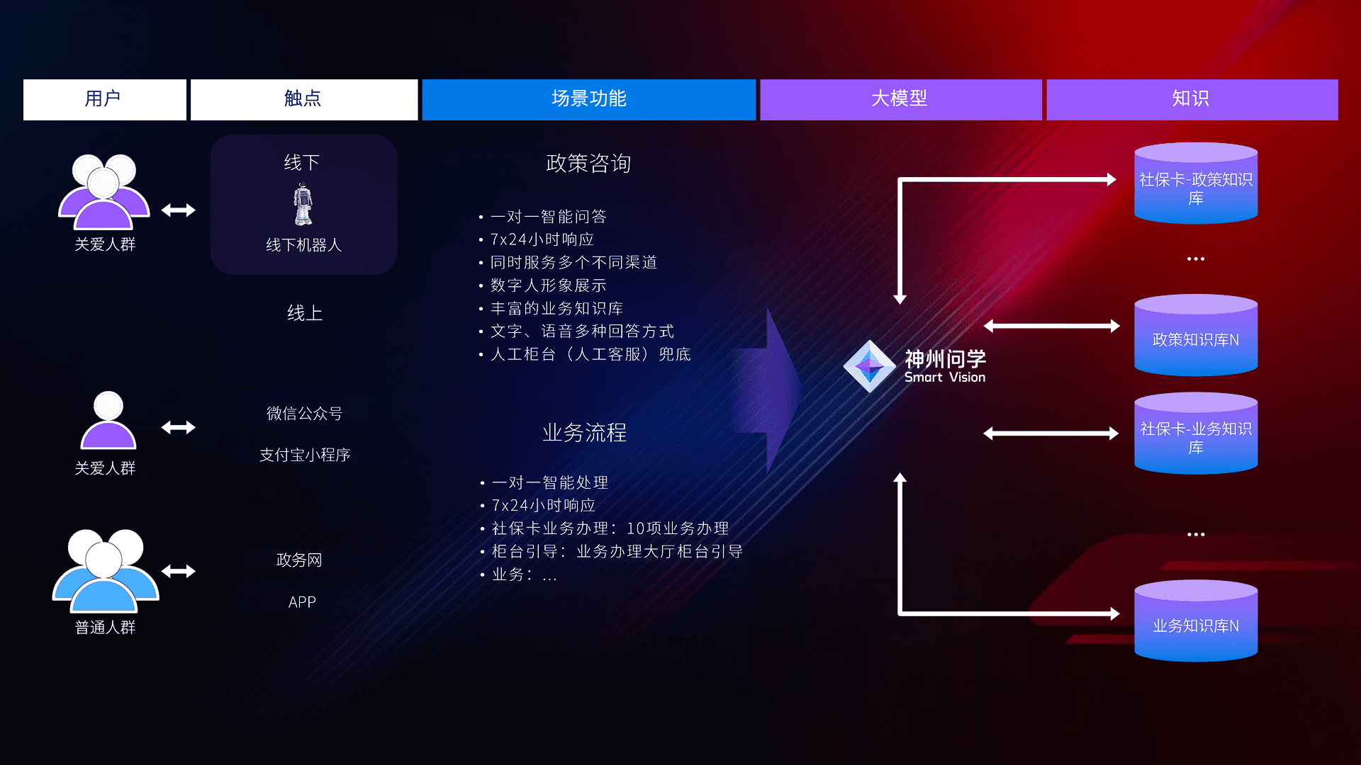 • 线上线下全覆盖:线上提供微信公众号、、、、支付宝小程序、、、、政务网、、、app多种渠道,,,与线下机器人形成完整服务体系。。。。