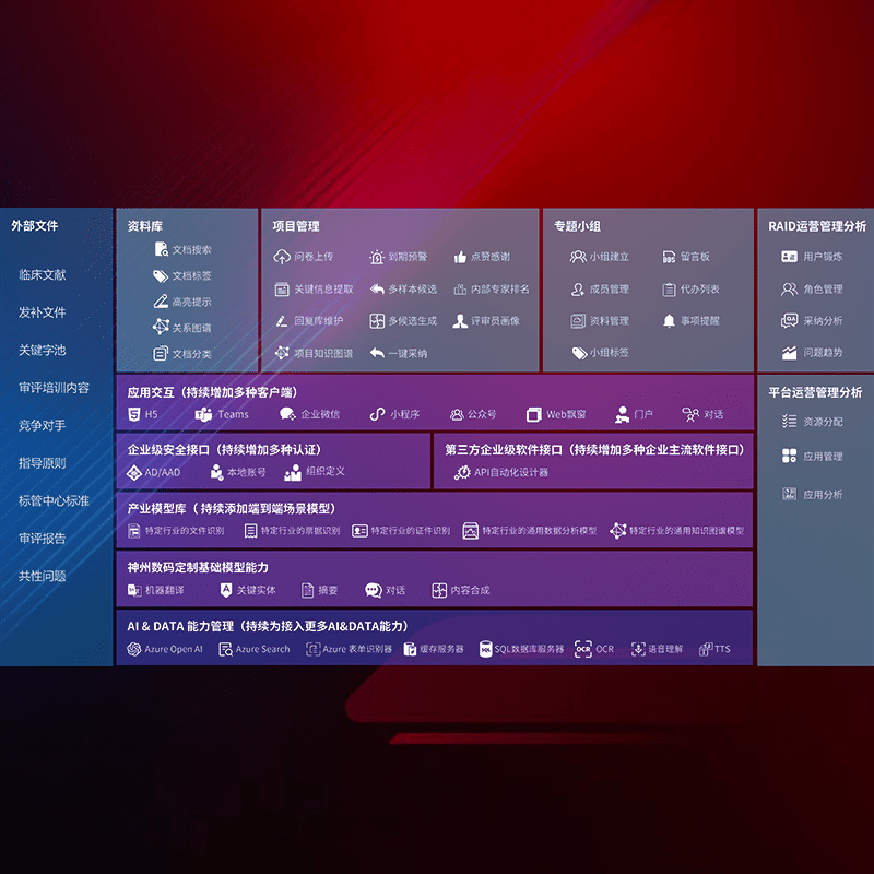 医疗器械产品上市前,,,要熟悉严格与繁复评审标准,,,整理分析监管机构指导文件中的海量信息。。。。企业急需一个智能化解决方案,,,,提升知识管理效率,,,,提高评审通过率,,以提升其市场竞争力。。。。